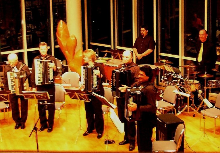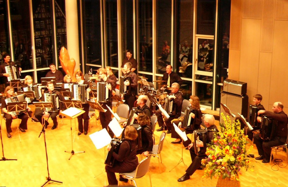 Am Samstag, den 8. April konnte unser 1. Vorsitzender Volker Hartmann unseren Ditzinger Oberbürgermeister Herrn Makurath, unseren DHV- Bezirksvorsitzenden Heinz Baitinger, Vertreter örtlicher und befreundeter Vereine sowie zahlreiche musikbegeisterte Besucher zum Akkordeonkonzert im Bürgersaal begrüßen. Das 1.Orchester unter der Leitung von José Mali eröffnete schwungvoll den Abend mit der Konzertouvertüre „Marinarella“ vom Komponisten und Militärkapellmeister Julius Fucik (1872 – 1916). Mediterrane Klänge folgten mit der viersätzigen Suite „Südlich der Alpen“ von Ernst Fischer (1900 – 1975). Die folgende rhythmisch sehr anspruchsvolle „Serenade“ des 1941 in Kingston on Thames geborenen und heute in Mallorca lebenden Komponisten Derek Bourgeois mit ihren ungeraden Taktarten verbunden mit einer einschmeichelnden Melodie meisterte das Orchester unter der Leitung ihres Dirigenten bravourös. Nach einer kleinen Umbaupause spielte sich das Quintett unter der Leitung von Jens Reimann in die Herzen der Zuhörer. Mit der Ouvertüre aus der Oper Donna Diana des Theaterkapellmeisters Emil Nikolaus von Reznicek (1860 – 1945) zeigten die Musiker ihr hohes spielerisches Können. Mit der Ballett-Suite von Hans Brehme (1904 – 1957), das eines der meistgespielten Werke der Orchesterliteratur ist, hat der Komponist mit einem guten Schuss Ironie, teilweise bis zur Verfremdung „Akkordeon-übliche“ Formen aufs Korn genommen. Mit der tänzerischen Skizze „Erinnerungen an ein Ballerlebnis“ von Hans Bund zeigten die Spieler ihr Talent auch anspruchsvolle Unterhaltungsmusik den Zuhörern leicht und zugänglich darzubieten. An dieser Stelle ein Dank an Jürgen Brandt, Schlagzeug und Yorck Wichardt, Pauken, die es verstanden Orchester und Quintett gefühlvoll zu begleiten. Der zweite Teil begann temperamentvoll mit „Sinfonia alla Barocco“ von Ted Huggens (1928). Hinter dem Pseudonym versteckt sich der zeitgenössische niederländische Komponist Henk (Hendrikus) Cornelis von Lijnschooten. Die „Spanischen Tänze“ von Moritz Moszkowski (1854 – 1924) mit den Sätzen Moderato und Con Moto folgten. Nach den einleitenden Worten zu „The New Village“ von Kees Vlak (1938) wurden die Zuhörer mit musikalischem Ausdruck, Dynamik und Rhythmik in die Geschichte der Dorfbewohner versetzt. Zum Abschluss begeisterte das Orchester mit der Russischen Fantasie von Jörg Draeger. Nach diesem wunderbaren Konzert entließen die Zuhörer das Orchester nicht ohne Zugabe. Ein recht herzlicher Dank geht an unseren Dirigenten José Mali, der diese anspruchsvollen Musikstücke hervorragend einstudierte und so allen viel Freude am Musizieren vermittelt. |